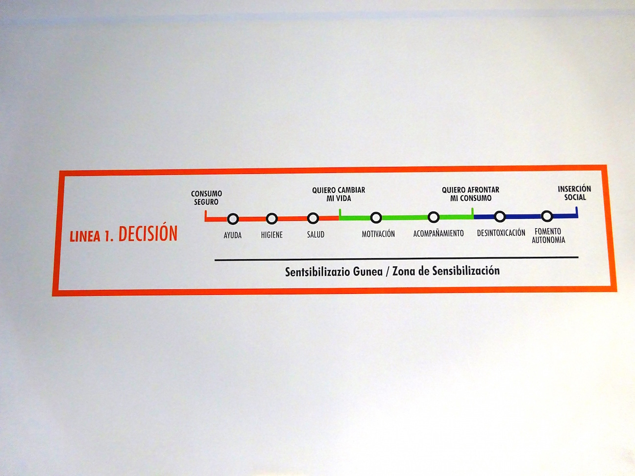 Drogen kontsumo segururako 100 bat gela daude munduan. Horietako bat Bilbon. «Erabiltzaileen bizi itxaropena eta bizi kalitatea areagotzea» helburu izanik, bidaia luzea egiten dute kontsumo higieniko eta seguru batetik hasita, gizarteratze prozesu oso bat egin arte.