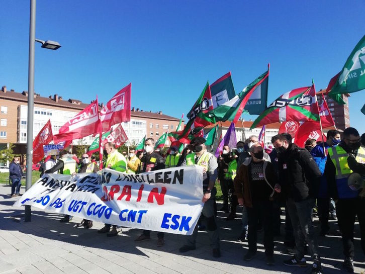 Convocados por los sindicatos ELA, LAB, CCOO, ESK, UGT, USO y CNT se han concentrado hoy ante la sede del Gobierno de Lakua, en Gasteiz. «No es la primera vez que el personal subcontratado de ambulancias queda abandonado y relegado en la sanidad vasca. Y es que el personal propio de Osakidetza, incluido el de sus ambulancias, un 1% del total, tienen ya la vacuna puesta. Sin embargo, el personal en manos de empresas privadas, el 99% restante, continúa a la espera y sin noticias», denuncian estos sindicatos.