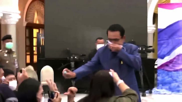 El primer ministro tailandés «desinfecta» con espray a los periodistas por una pregunta