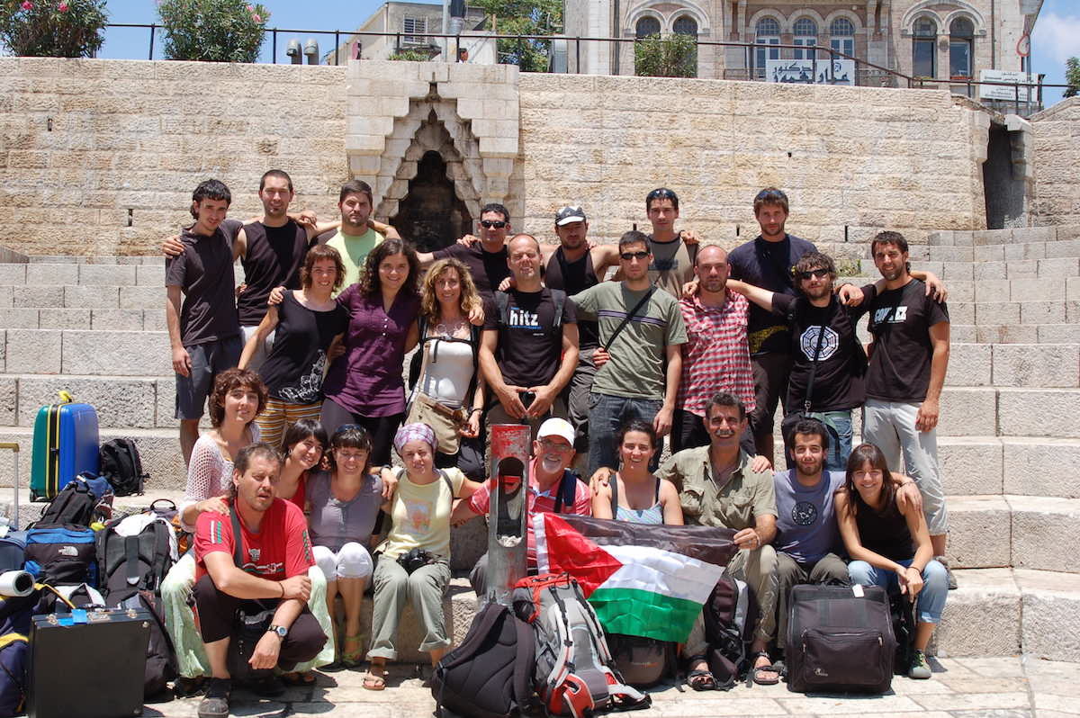 2010ko uztailean, azpian ezkerrean azaltzen da Fran Balda, Palestinako Biladi Hadi brigadaren lehen txandako kideekin. (BILADI HADI)