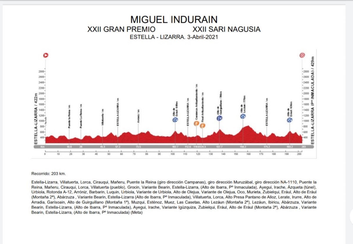 Un trazado largo y sinuoso, varias ascensiones –sin ser de porcentajes elevados– y la llegada en la localidad de Lizarra serán las señas de identidad de un Gran Premio Miguel Indurain que llega a su vigesimosegunda edición –no pudo correrse el año pasado por la pandemia sanitaria– y que conserva su esencia.