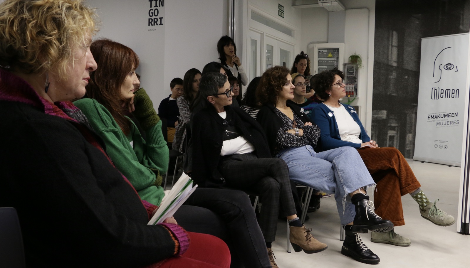 Zinemagintzan eta arte eszenikoen alorrean dabiltza emakumezko profesionalek osatzen dute (H)emen elkartea. 250 bazkide dira orotara eta guztiek helburu berari jarraitzen diote: beirazko sabaia hautsi eta euren kide gizonezkoek dituzten aukera berak izan nahi dituzte. Ez gehiago ez gutxiago: berberak. Berez konplexua den sektore batean dabiltza, kontaktuak izateak eta inertziek pisu handia duten eremuan, eta erakuslehio nagusietara iristeko oztopoek bidea bi bider zailago egiten dute: «Datuek erakusten dute emakumeen partehatzea gizonena baino askoz txikiagoa dela, baina emakumeak, egon, badaude. Kontua da ez direla ikusgarri egiten, ezta hauek egindako lanak ere», jarri du azpimarra Miren Manias, EHUko irakasleak. (H)emen elkarteko zuzendaritzako kide da Manias, Olatz Behobide aktore eta zuzendaria, Tessa Andonegi antzezlea eta Lara Izagirre zuzendari, gidoigile eta zinema zuzendariarekin batera. Zinemagintzan zein arte eszenikoen alorrean lantaldeak «ezagunen artean» osatzen direla diote, eta zirkulu itxi horietan gizonezkoak dira nagusi. «Lan gutxi egiten da emakumezkoen bila joateko», dio Maniasek.