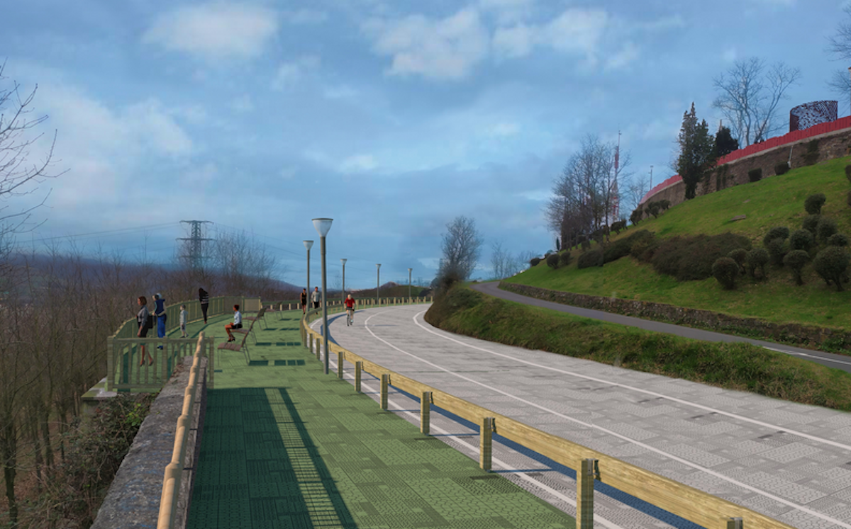Se trata de construir un paseo de más de seis kilómetros, de dos a dos metros y medio de ancho, a lo largo de la carretera BI-3741 con nuevas zonas estanciales y miradores para poder dotar al parque de Artxanda de buena accesibilidad.