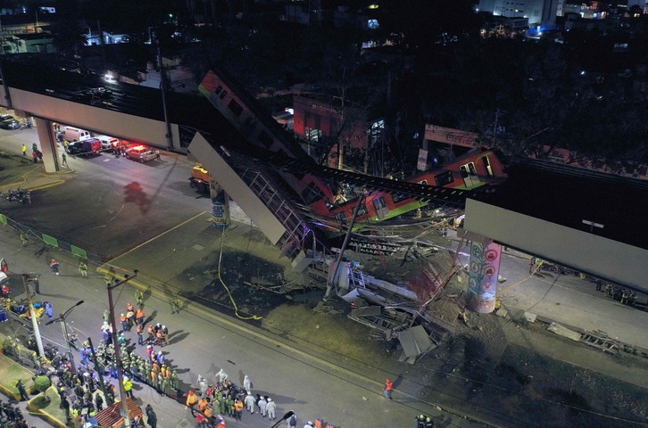 Al menos 23 personas han muerto y unas 70 han resultado heridas al desplomarse en la noche de lunes un puente de la vía elevada de la línea 12 del Metro de Ciudad de México entre la estación Olivos y Tezonco sobre el que circulaba un tren con varios vagones.
