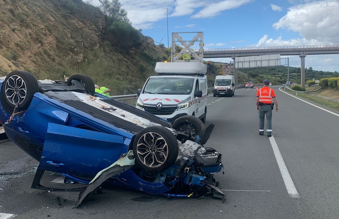 El coche quedó volcado en la calzada, por lo que hubo que interrumpir el tránsito de vehículos en uno de los sentidos de la autopista.