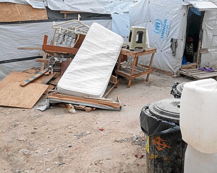 Cuando uno piensa en un campamento de refugiados, quizá lleguen a la mente esas tiendas de campaña que aparecen en informativos de televisión, pero la realidad ofrece una imagen bien distinta. «Voy a explicar mi primera impresión. Esperaba ver lo que aparece en la tele, todo muy ordenado y organizado en tiendas de campaña. Sin embargo, hay pocas tiendas, y todo lo demás son tiendas construidas por ellos, con plásticos. No es un lugar adecuado, pero si por lo menos estuviese limpio... ahora es un vertedero y a la hora de limpiar te encuentras con ratas, escorpiones, sarna, de todo. Ha quedado muy claro porque en los últimos tres meses otra ONG ha empezado a realizar labores de limpieza y han toneladas de basura».