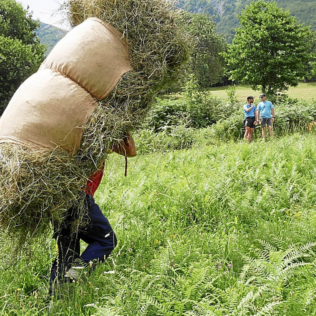 Kableak mila metroko luzera izaten zuen eta 500 metroko desnibela. Belarra Malloetatik baserrira jaistea familia osoaren egitekoa izaten zen, bakoitzak bere zeregina izaten zuen. «Belarra mozteko eta jaisteko garaia iristen zenean –uztail bukaeran, abuztuan eta irailean–, auzoan 40-50 laguneko kuadrillak antolatzen ziren». Lana goizean goiz hasten zen. Jaiki, mendira igo eta segarekin belarra mozten zuten lehendabizi. Han bertan lehortzen utzi eta prest zegoenean buuxi izeneko fardo berezietan biltzen zuten.