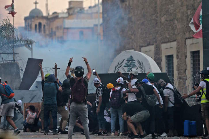 Centenares de manifestantes se han trasladado desde el puerto de Beirut para continuar con las protestas en la céntrica Plaza de los Mártires, cuyas calles aledañas estaban siendo escenario de choques cada vez más violentos con la Policía.