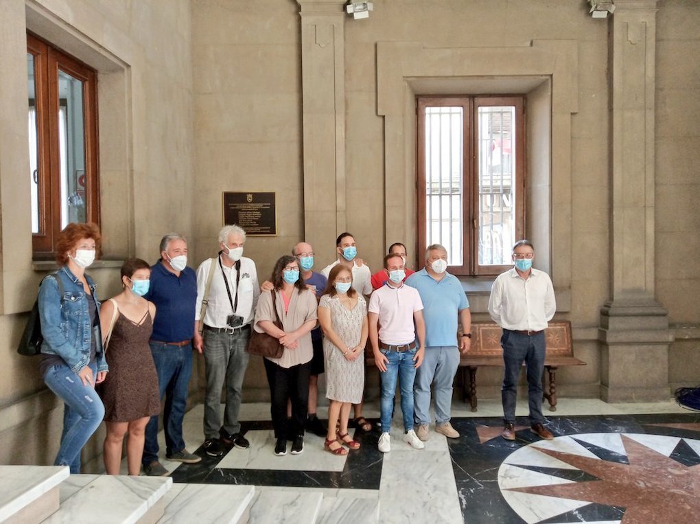 Concejales del Ayuntamiento de Iruñea junto a familiares de Enrique Cayuela. (@PamplonaPSN)