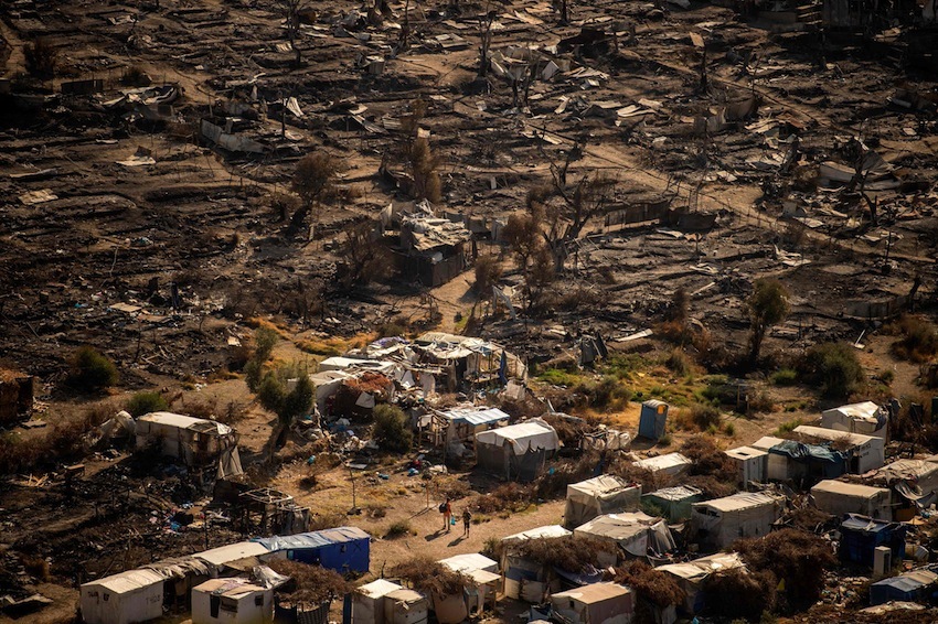 El 9 de setiembre de 2020, el campamento de Moria fue completamente devastado por las llamas en dos incendios sucesivos. Más de 12.000 personas que quedaron sin hogar fueron reubicadas apresuradamente en otro campamento destinado a ser temporal.