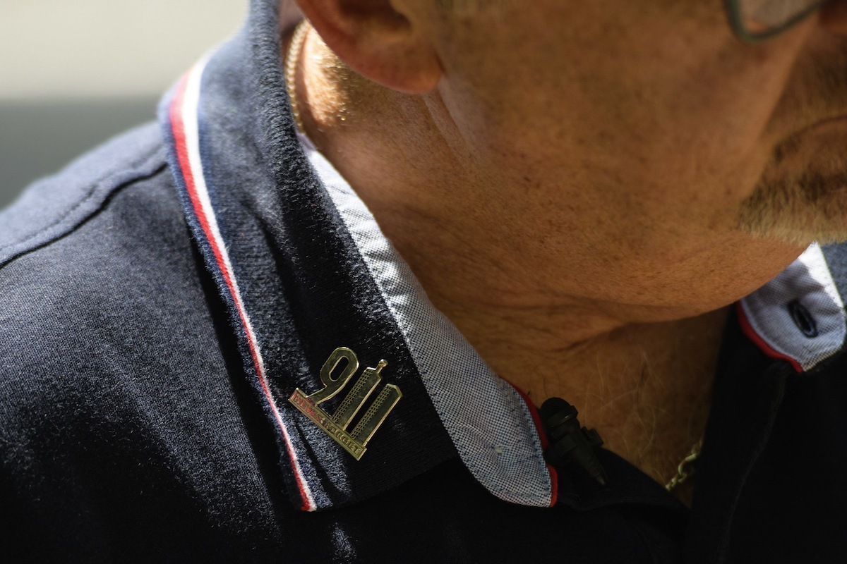 Con la fecha «911» (11 de septiembre, en inglés) tatuada en su muñeca, un prendedor de las Torres Gemelas en el cuello de la chaqueta y una piedra que acaricia siempre en el bolsillo, el 11/9 le acompaña «como una sombra».