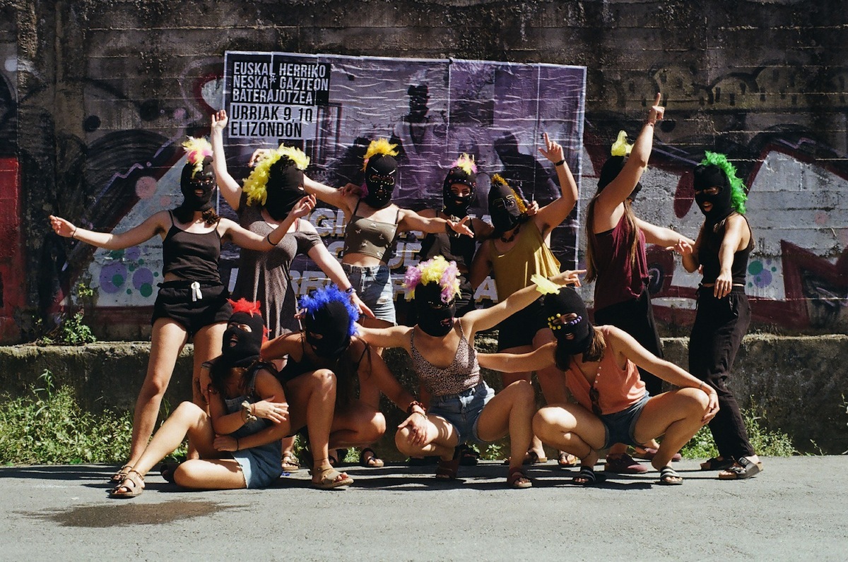 Era berean, gazte mugimendu zein mugimendu feministaren parte gara eta ahots propioz eragiten dugu bertan. Gure borroka kolektiboki garatu beharreko borroka bat da, mugimenduaren, taldearen zein norbanakoen zaintzan eta ahalduntzean oinarritzen dena. Borroka modu horiek sortzen joan garen iruditeria komun horretan islatzen dira, izaera errebeldea, zirikatzailea eta erradikala daukan mugimendua. Argazkian ageri diren buru-beroki koloretsuek ‘ni ez naiz ni bakarrik, gu gara, denok gara, kolektiboki erantzuten ari gara’ esaten dute, eta gure praktikak eraldaketa feministarako aurrerapauso kolektiboak dira.