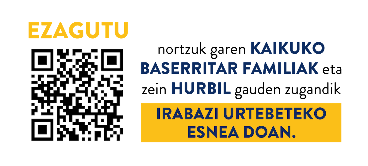 Kaikuko familia-abeltzainen lanari eta ahaleginari esker, besteak beste Edurneren eta Santi eta Iñakiren familiei esker, hurbileko produktua lortzen dugu, Bizkaian, Gipuzkoan, Araban eta Nafarroan bizi diren abeltzain familiek ekoitzitakoa, uste baino askoz hurbilagokoa, kalitate eta zapore handikoa. Familia horiek, gainera, beren behiak modu natural eta arduratsuan zaindu eta elikatzen dituzte gure larreetako belarrez. QR kode hau eskaneatuz gero, zure inguruan zenbat ganadutegi dauden ikusi eta Kaiku Km0 ekoizpen arduratsuko brik‑esne bakoitzaren atzean dauden familiak ezagutu ahalko dituzu.