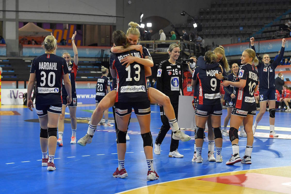 Las jugadoras de Noruega celebran el pase a semifinales. (Pau BARRENA/AFP)