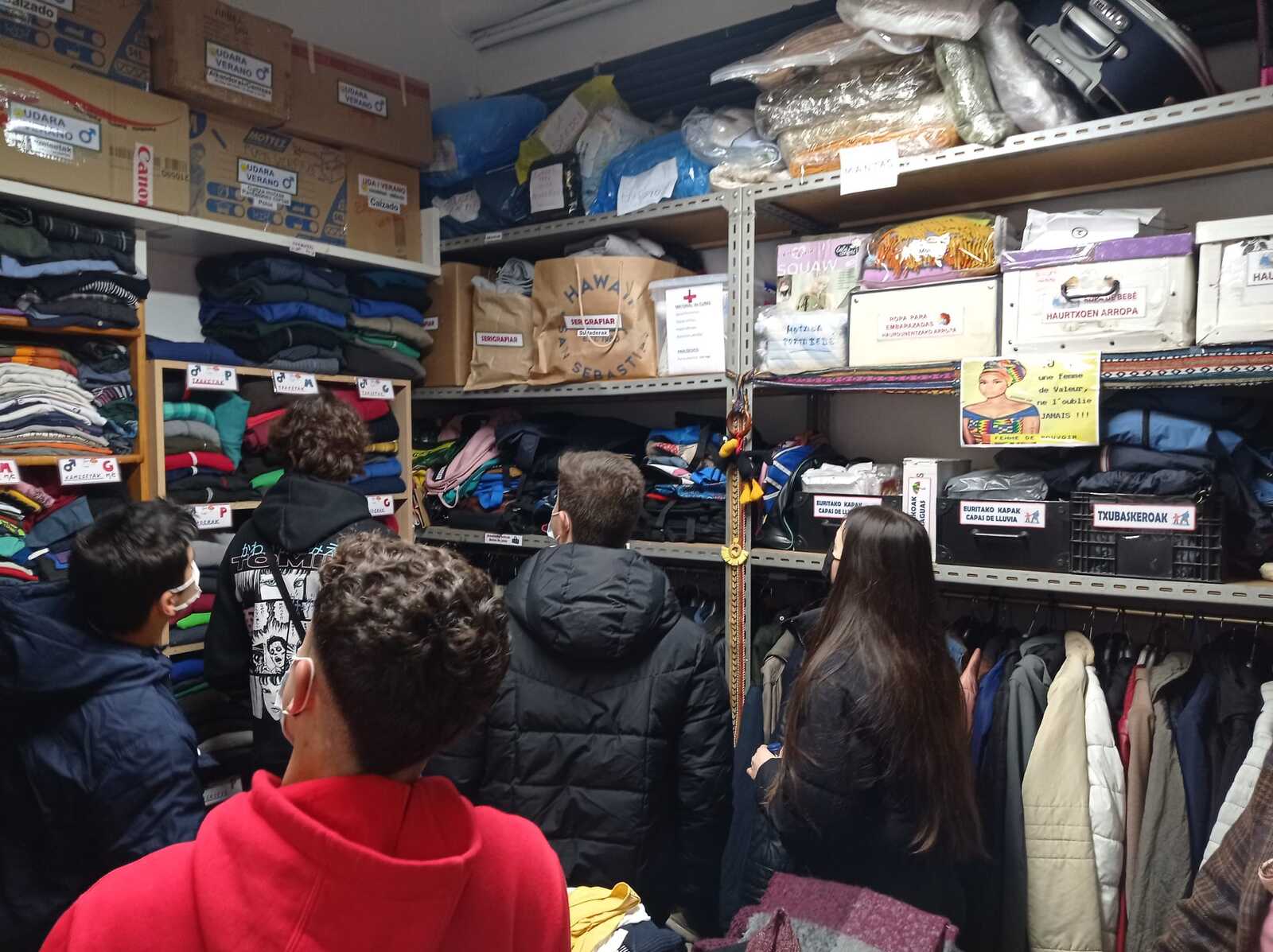 Harrera Sareak Irungo Kale Nagusian duen arropategia ere ezagutu zuten batxilergoko 1. mailako ikasleek. Trantsituan dauden pertsonek behar dituzten arropa, motxila edo tresnak banatzeko tokia da arropategia, eta gazte zein irakasleek erabaki zuten beraiek ere lagundu nahi zutela.