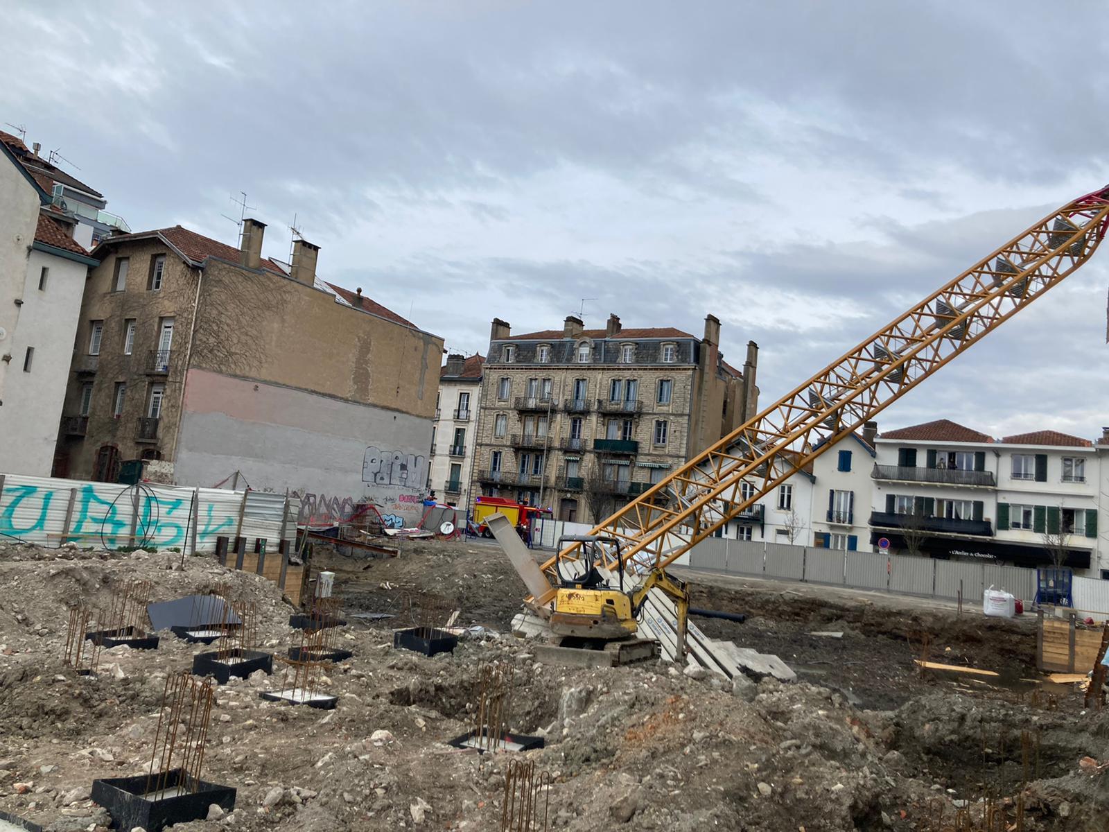 Alsace-Lorraine bulebarrean gertatu da ezbeharra. Oraindik argitu ez diren arrazoiengatik lanean ari zen garabia erori egin da eta alboko eraikinaren kontra egin du talka.