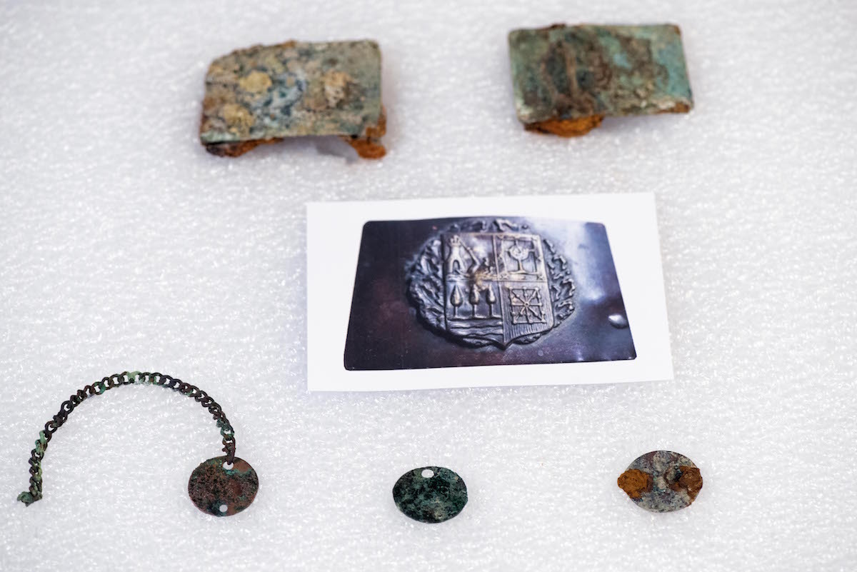 Chapas con inscripciones encontradas en la fosa común. (Ayuntamiento de Bilbo)