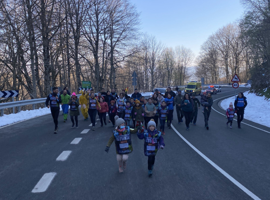 Berueten, lasterkariek ez dute kexurik izan malda gora, Korrikak eta lekukoak ematen duen indarraren seinale. Sasoia jubilatu elkarteak autobusean ekarri du bere kemena.