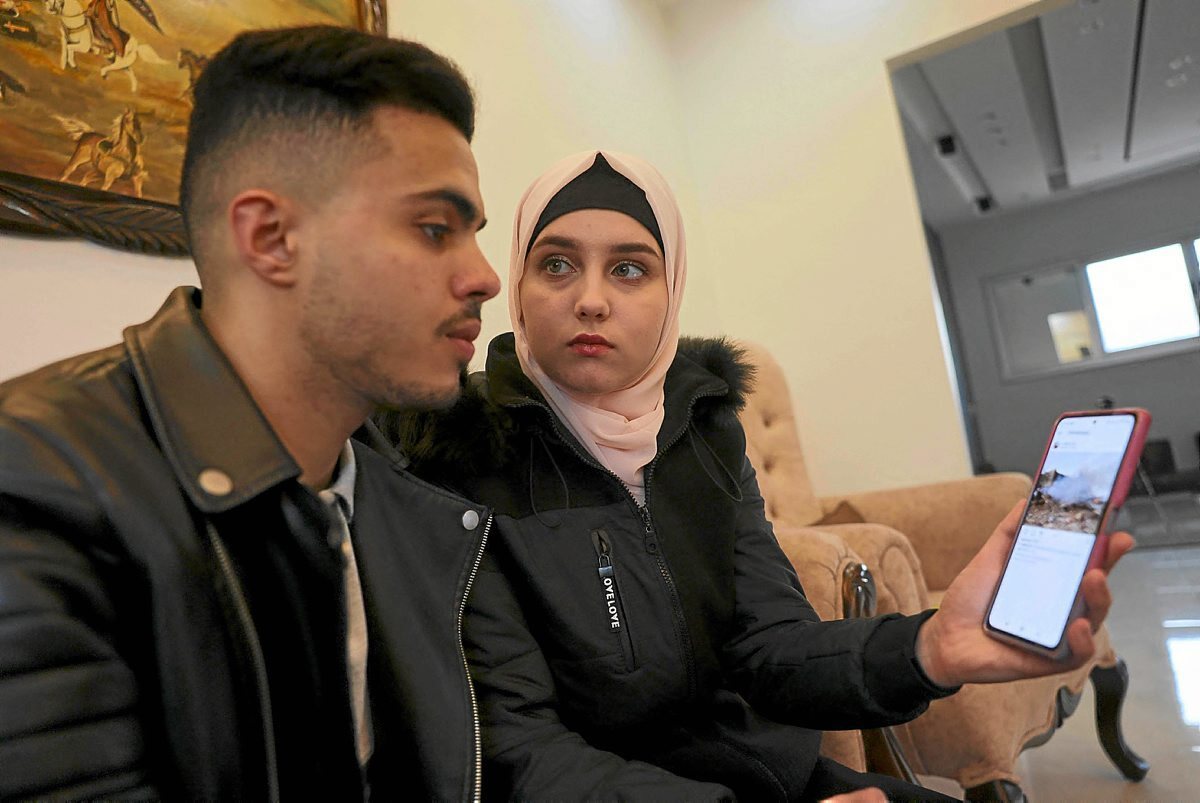 «Senarrak eta biok Ukraina baino toki seguruagoa aurkitu behar genuen, eta bere herria aukeratu genuen, Gaza», azaldu du neskak. Ezin izan dio negarrari eutsi eraso errusiarrek suntsitutako eraikinen bideoak bere telefonoan erakusten hasi denean.