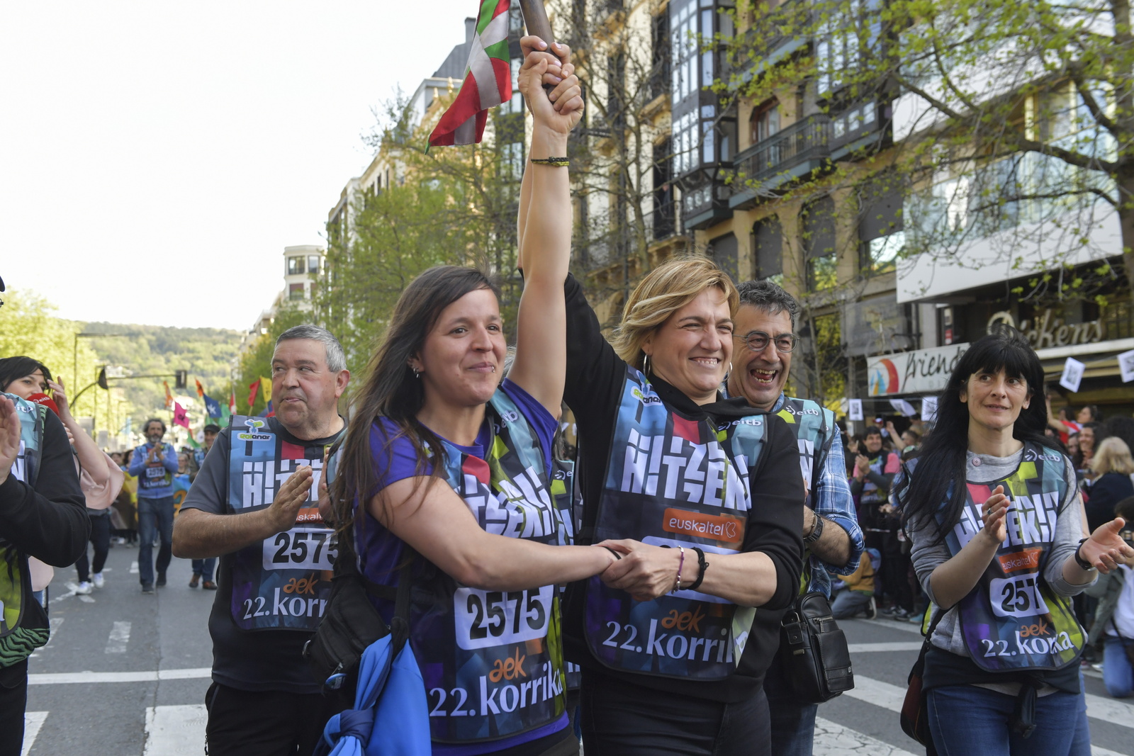 Azken kilometroek baina, utzi dituzte aurtengo Korrika laburbiltzeko irudiak. Milaka lagun izan dira Korrikan egun guztian zehar, baina azken minutu horietan uholdea bihurtu da euskararen aldeko aldarria, Donostia txiki utziz eta festa borobilduz.