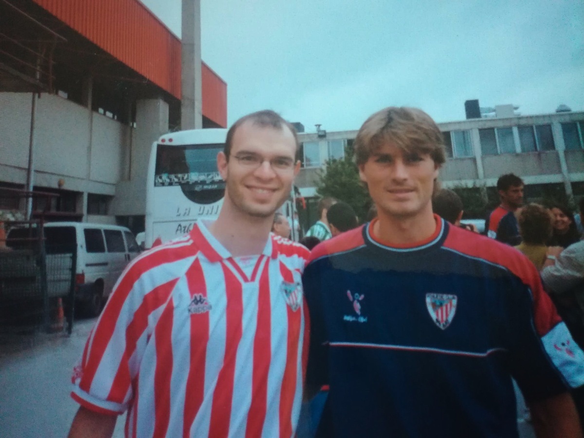 Sinceramente, gracias a Julen Guerrero. Cuando era jovencito me había impresionado como jugador, y por consecuencia empecé a simpatizar con "los leones". Fue el golpe de rayo, llegué hasta conocerlo. Y por su culpa hice una de mis primeras locuras, llevando a mi mujer hasta Tignes, en los Alpes, para asistir a una pretemporada del Athletic, en la época con Heynckes en el banquillo.