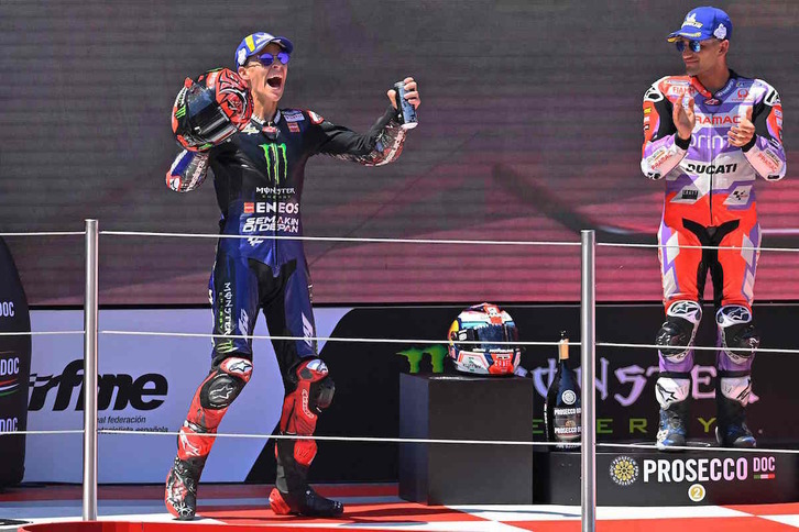 Quartararo, que logra su segunda victoria de la temporada, ha llegado a tener una ventaja de más de cinco segundos sobre sus inmediatos perseguidores, el propio Aleix Espargaró, Jorge Martín (Ducati Desmosedici GP22) y el francés Johann Zarco (Ducati Desmosedici GP22).