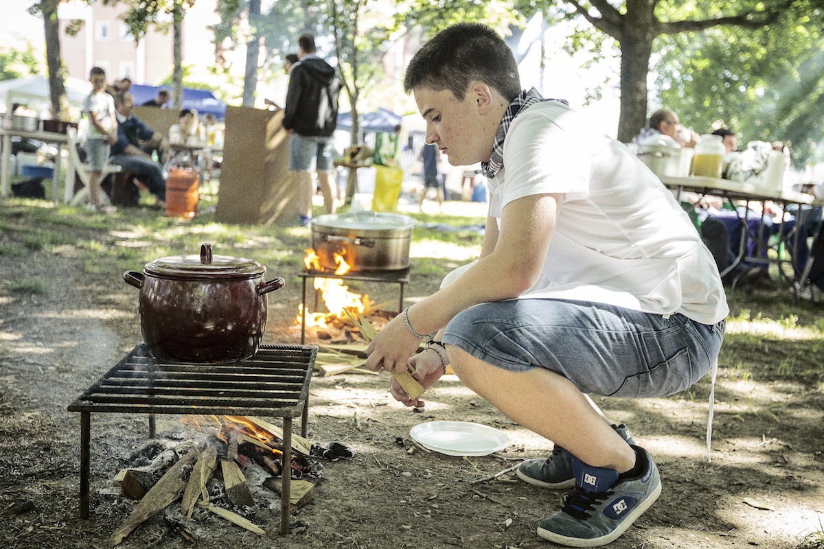 Bi urteko etenaldiaren ondoren, Uriguen parkea sukalde erraldoi bat bihurtuko da igande goizean, eta bertan elkartzen diren kuadrillek behi-haragiz, patataz eta piperrez ostatutako kazuelak prestatuko dituzte. Izena emateko epea 10.00etatik 11.30etara egongo da zabalik eta epaile aurrera 13.00etatik 14.00etara aurkeztu beharko dira.
