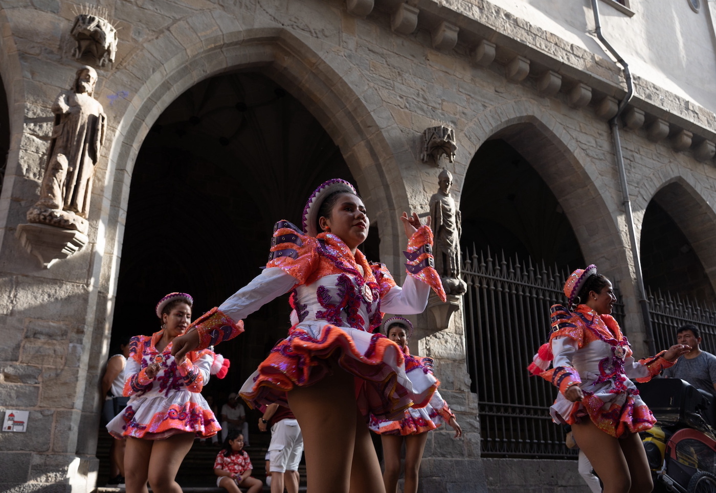 Cristian Guevara, representante de la comunidad boliviana, explicaba a NAIZ así la situación: «Habíamos decidido no bailar porque nos han echado de las txosnas de Antoniutti, pero no por eso vamos a dejar de hacerlo ya que, después de dos años, queremos disfrutar de los sanfermines al igual que todos y el año que viene ya decidiremos qué medidas tomar, pero los que hicimos esa rueda de prensa para denunciar lo ocurrido estamos bailando ahora».