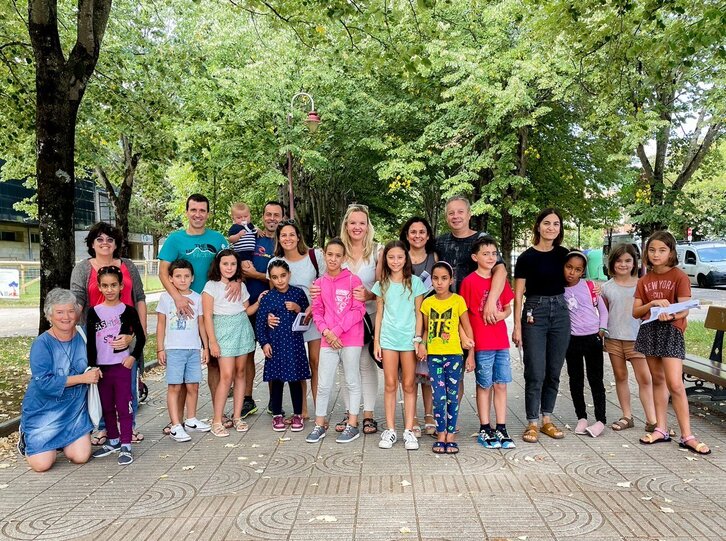 Zarautzera iritsitako haur saharar batzuk, haien harrera-familiekin.