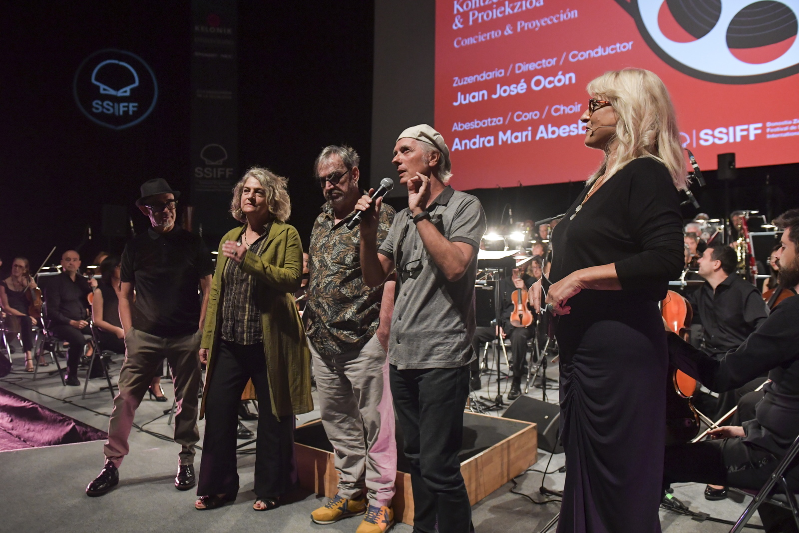 Tocar en vivo mientras se proyectan las imágenes «es un ejercicio dificilísimo de sincronización», ha querido recalcar el compositor Aitor Amezaga, quien ha destacado el papel de Juan José Ocón, el director de Euskadiko Orkestra. Este mediodía Ocón ha sido el «capitán» del «barco» en este viaje musical multitudinario en el Velódromo, y esta tarde, a las 20.00, arrancaba, en el mismo lugar, la singladura del documental ‘Sintiéndolo mucho’ con su estreno. Dirigido por Fernando León de Aranoa (‘El buen patrón’, ‘Los lunes al sol’...), este documental es el resultado de trece años de rodaje y de seguimiento de un músico y personaje tan particular como Joaquín Sabina.
