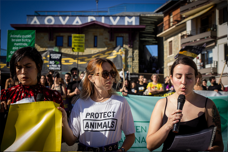 «Euskal Herriko lekurik bisitatuena dugu atzeko kaiola –esan dute–. Baina gu ez gara etorri bisitari moduan. Barnean dauden norbanakoei babesa erakustera etorri gara, haien askatasun grinarekin bat egitera (...) 5.000 norbanako inguru izan dira hemen atzean itxiak 1928tik hona. Metro gutxi batzuetara dagoena, itsaso zabala izan arren, ziurrenik askok ez dute inoiz ezagutuko. 2028an 100 urte beteko lituzke Donostiako Aquariumak, eta hori gerta ez dadin borroka egingo dugu».