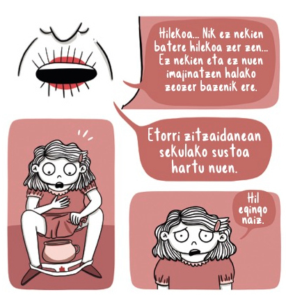 Hilekoa nork berea duela esatera dator ilustratzaile kataluniarra, bakoitzak bere modura bizi duela, baina, horrela izanik ere, ez dela nork bere barruan, lotsaz ala beldurrez, nahitaez gorde beharreko zerbait: funtsean, hitz egin daitekeela –hitz egin behar dela– menstruazioari buruz.