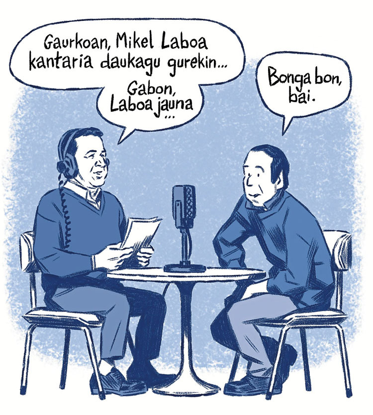 «Egorik ez da existitu eta dena obraren aldekoa izan da, oso erraza. Gozagarria izan da elkarrekin lan egitea», diote hirurek. «Ez dakit tokatuko zaidan berriz Euskal Herrian proiektu garrantzitsuagorik, hain interesgarririk komikigintzan», egin du zalantza marrazkilariak. «Gaztea zara oraindik!», bota dio Canok. «Bai, baina ez daude hainbeste Mikel Laboa», Larratxek.