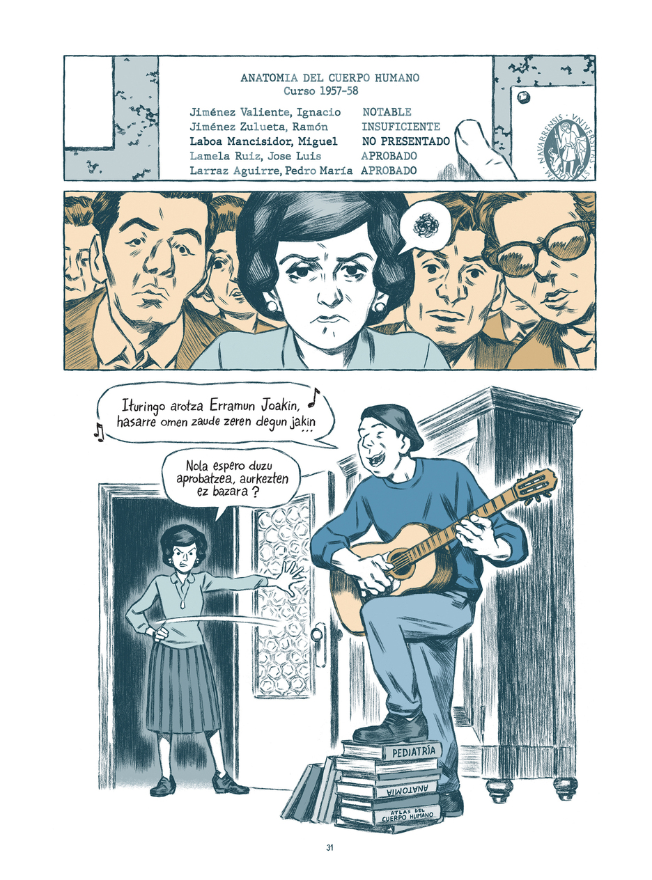 Kolore neurtuak. Begiratu hutsera, koloreak pizten du begien arreta komikiaren orrietan. Zuri-beltza, kolore apalak eta, tarteka, kolore biziko detaileak ikus daitezke han-hemen. Emaitzaz gustura ageri da marrazkilaria. «Momentu jakin batzuk nabarmentzeko erabili nahi nituen kolore biziak, dena modu horretan eginez gero ez baita nabarmentzen. Kapitulu bakoitzak bere kolore gama du. Mikel inspiratzen duten uneekin lotuta daude kolore biziak. Batetik, batasun estetikoa ematen diote komikiari eta baliabide narratibo bezala ere erabil dezakezu. [Jose Luis] Zumetari ere keinu egiten dioten kolore primarioak dira. Sormenarentzako mugak oso onak dira, beste jolas batzuk egitea ahalbidetzen du. Horrez gain, ekonomikoagoa ere bada kolore gutxirekin lan egitea».