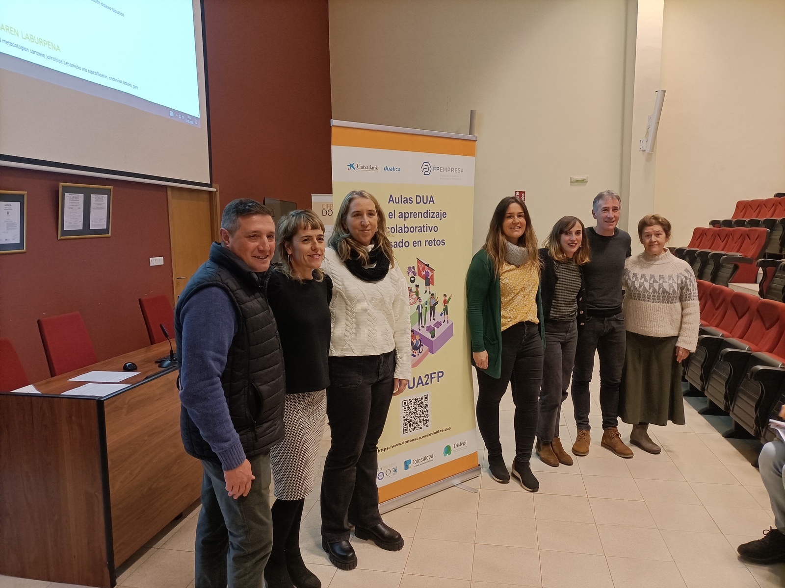 Amaia Osambela proiektuko komunikazio arduraduna, Arritxu Gonzalez Balioak 4.0ko arduraduna, Don Boscoko Sandra Vazquez, Nerea Sanchiz Tolosaldeko Balioak 4.0ko arduraduna eta Miren Urquijo Dislegiko lehendakaria izan ziren bertan.