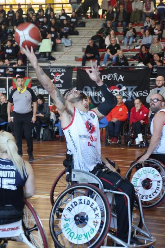 Txurdinagako kiroldegiak Bidaideak Bilbao BSR-ren beste arrakasta bat ikusi du. (@BIDAIDEAK)