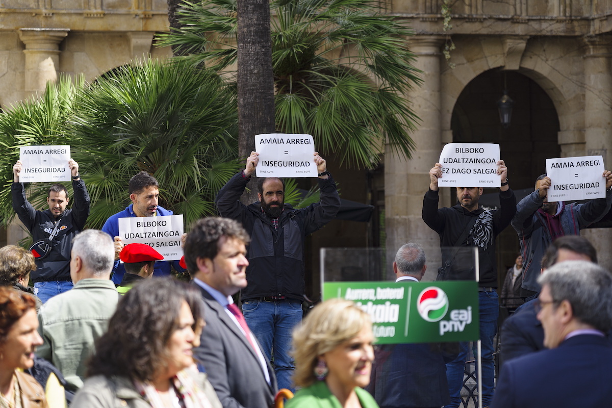 Ekitaldia hasi aurretik, ErNE sindikatuko kide batzuek protesta egin dute plazan, Amaia Arregi Segurtasun Saileko zinegotziaren kontrako afixak eramanez. Han zeuden udaltzainek aginduta, alde egin dute manifestariek ekitaldi oztopatu gabe.