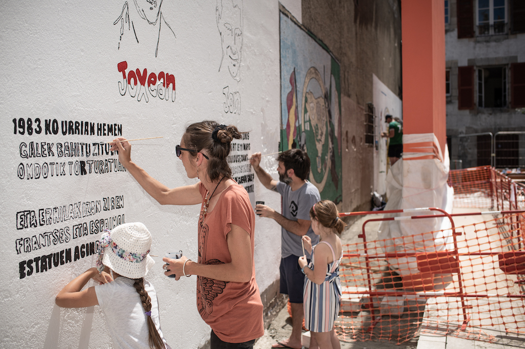 El pasado fin de semana llegó el turno para los pinceles. Una cuadrilla de pintores o grafiteros voluntarios emprendieron la tarea de refrescar esos muros cargados de historias para que puedan seguir hablando a las nuevas generaciones de unos sueños sin los que no se entienden las nuevas realidades que afloran hoy en Ipar Euskal Herria.