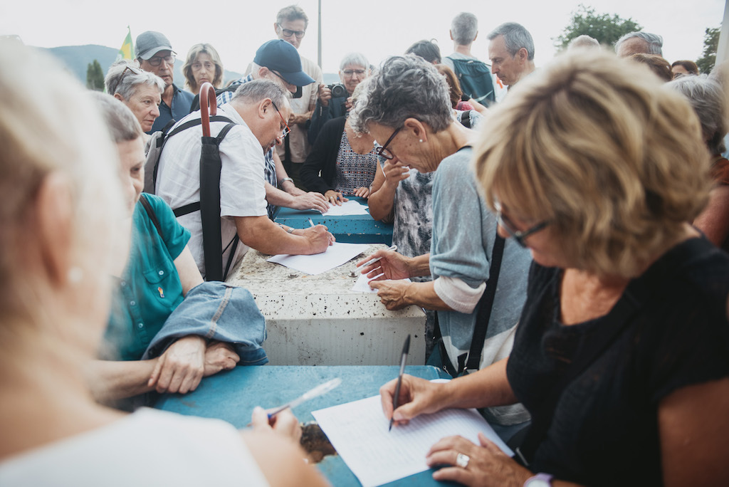 Desmartxa horren aldeko sinadurak biltzen amaitu da Santiago zubian Bidasoa Etorkinekin, Irungo Harrera Sarea, Diakite-Etorkinekin, Ongi Etorri Errefuxiatuak, Bagera, SOS Arrazakeria, Bizi!, LAB, FSU, Solidaires, EH Bai, EELV, NPA eta Mugak Zabalduz Karabana eragileek deitui duten protesta.
