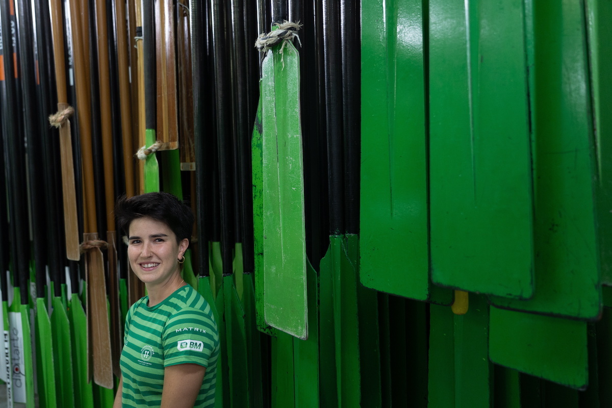 Hondarribiko Arraun Elkartean arraunlariak gutxika-gutxika sartzen ari dira entrenamendu saioa egiteko. 18.00etan etorri da Miren Garmendia Hondarribiko patroia, beste bi arraunlarirekin batera. Taldekideak zuzenean klubeko gimnasiora joan dira, uretara sartu baino lehenagoko lan saioa egiteko. Garmendiak, ordea, aurretik egin du lan hori –elkarrizketagatik–, eta NAIZekin egoteko tartea hartu du. Klubeko instalakuntzen ondoan taberna bat dago, eta han dago Iker Cortes Hondarribiko entrenatzailea. «Miren patroi ona da», adierazi du Cortesek. Garmendiak barre egin du.