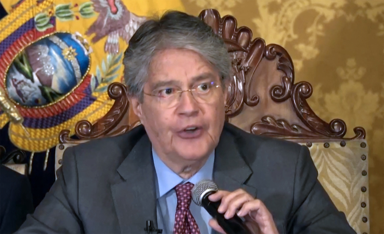 El presidente de Ecuador, Guillermo Lasso, durante su mensaje a la nación. (AFP)