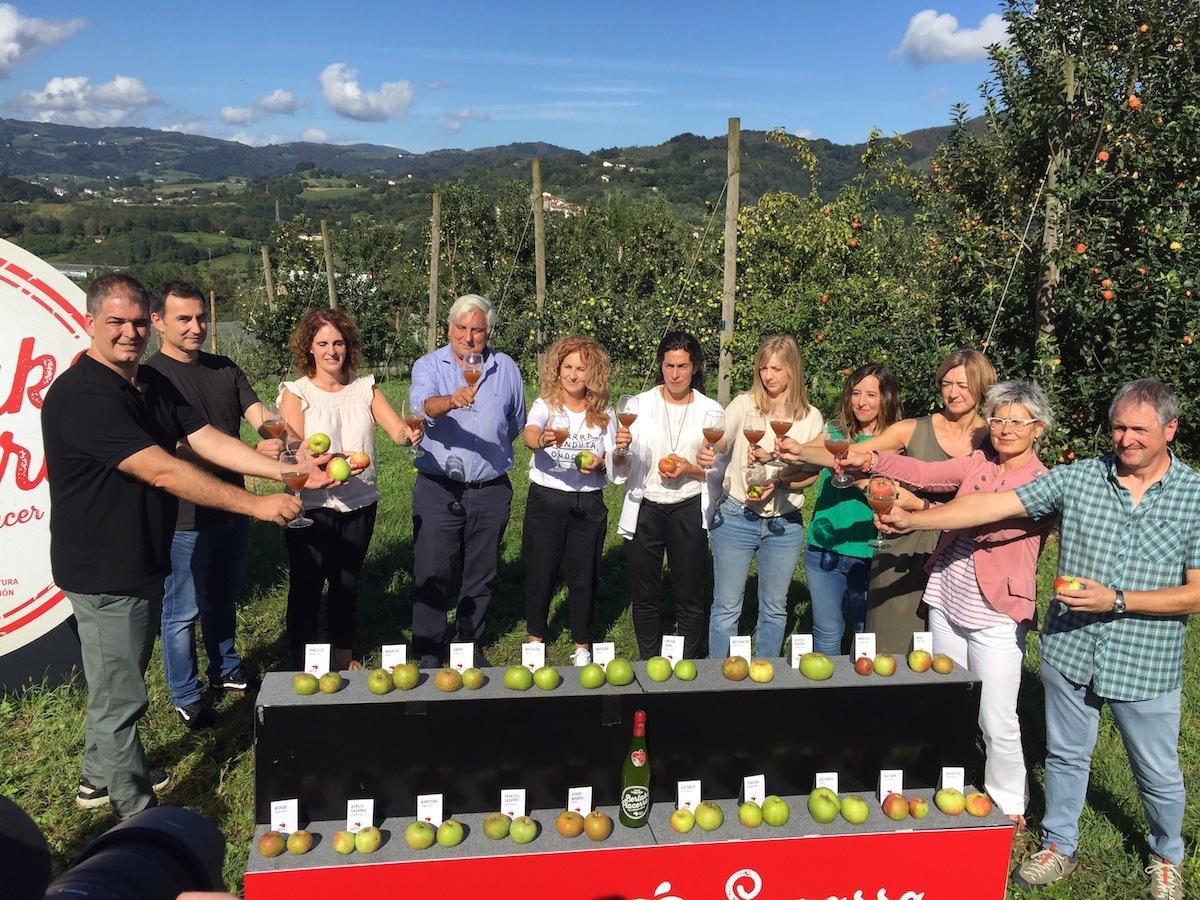 Lehen muztioarekin topa egin dute Euskal Sagardoa Jatorri Deiturako arduradunek. (J.S.)