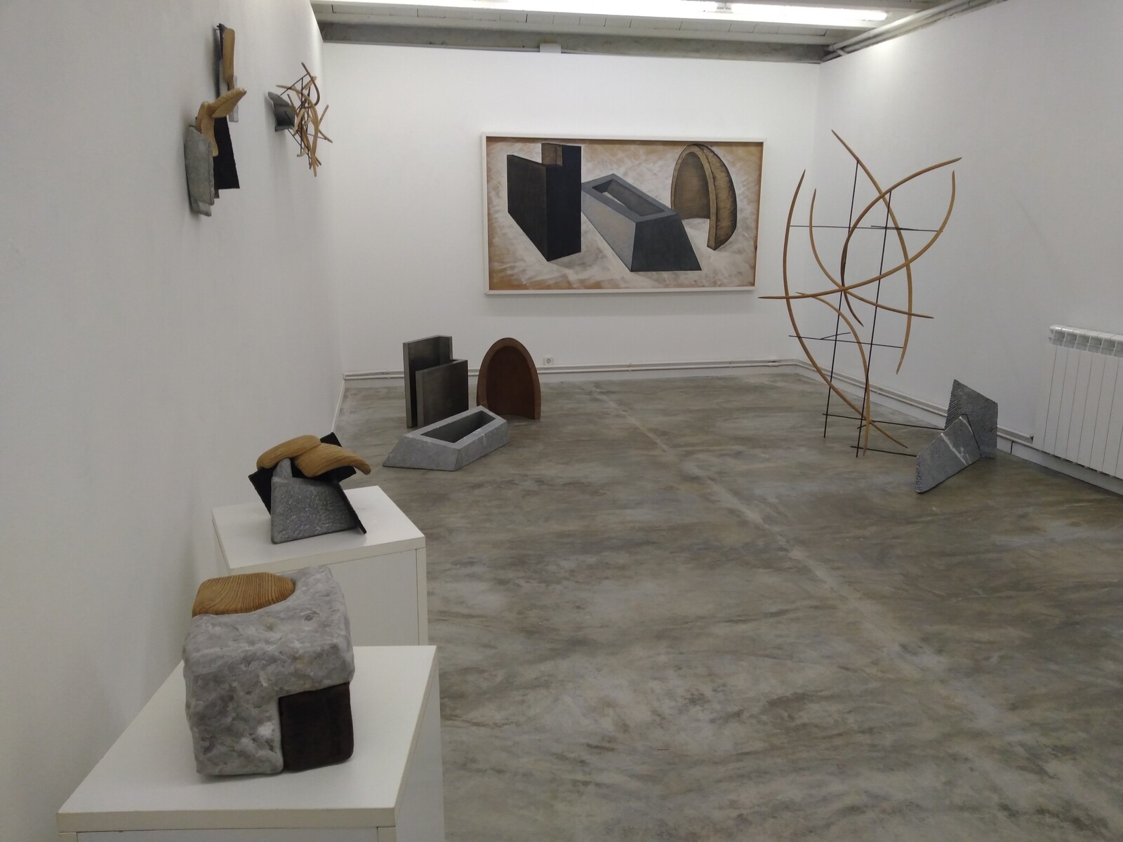 Badaude elementuak, ura, airea eta sua, harria, egurra eta burdina materialekin elkartzen ditudanekoak, badaude makla erako osaketak, badaude triadak edo hirukoak eta badaude (des)materializazioa esperimentatzen dudan ildokoak. Neurri ertainekoak eta txikiak dira. Baten bat zaharragoa, 1989koa, batzuk 2022koak eta besteak tartekoak.