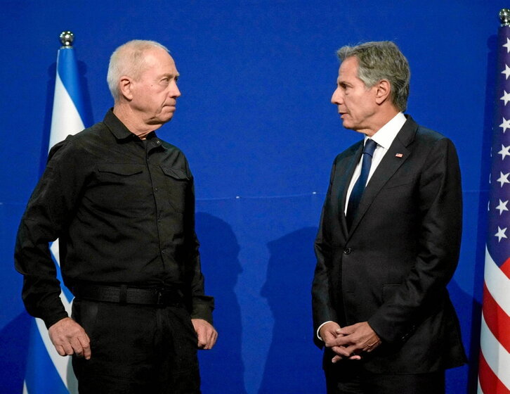 Era berean, Israelek Gazari ezarritako erabateko blokeoak han diren bi milioi pasa biztanleei ekarritako hondamendia arintzen laguntzea espero du Washingtonek, eta horretarako urratsak onartzea Tel Avivek. Urriaren 7ko erasoa gertatu eta berehala Ekialde Hurbilera bidean zen Anthony Blinken AEBetako Estatu idazkaria. Israelez gain, Jordania, Arabiar Emirerriak, Egipto, Saudi Arabia, Bahrain eta Qatar bisitatu ditu, eta Palestinar Agintearekin ere batzartu da. Bidenen bisitaren atarian, AEBetako estatu idazkariak aditzera eman zuenez, «AEBek eta Israelek plan bat adostu dute, nazioarteko erakundeen eta herrialdeen laguntza humanitarioa Gazako zibilengana irits dadin; horren barnean dago zibilak arriskuz kanpo mantentzeko guneak sortzeko aukera».