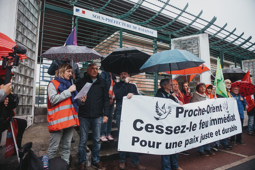 Gazaren aurkako Israelgo Armadaren bonbardaketak salatzeko xedez urriaren 13an Urrruñan deituriko elkarretaratze bat debekatu zuen prefetak. Egun berean Maulen deitutako jende bilkura, egin ahal izan zuten nahiz eta Poliziaren presentzia itogarria izan zen.