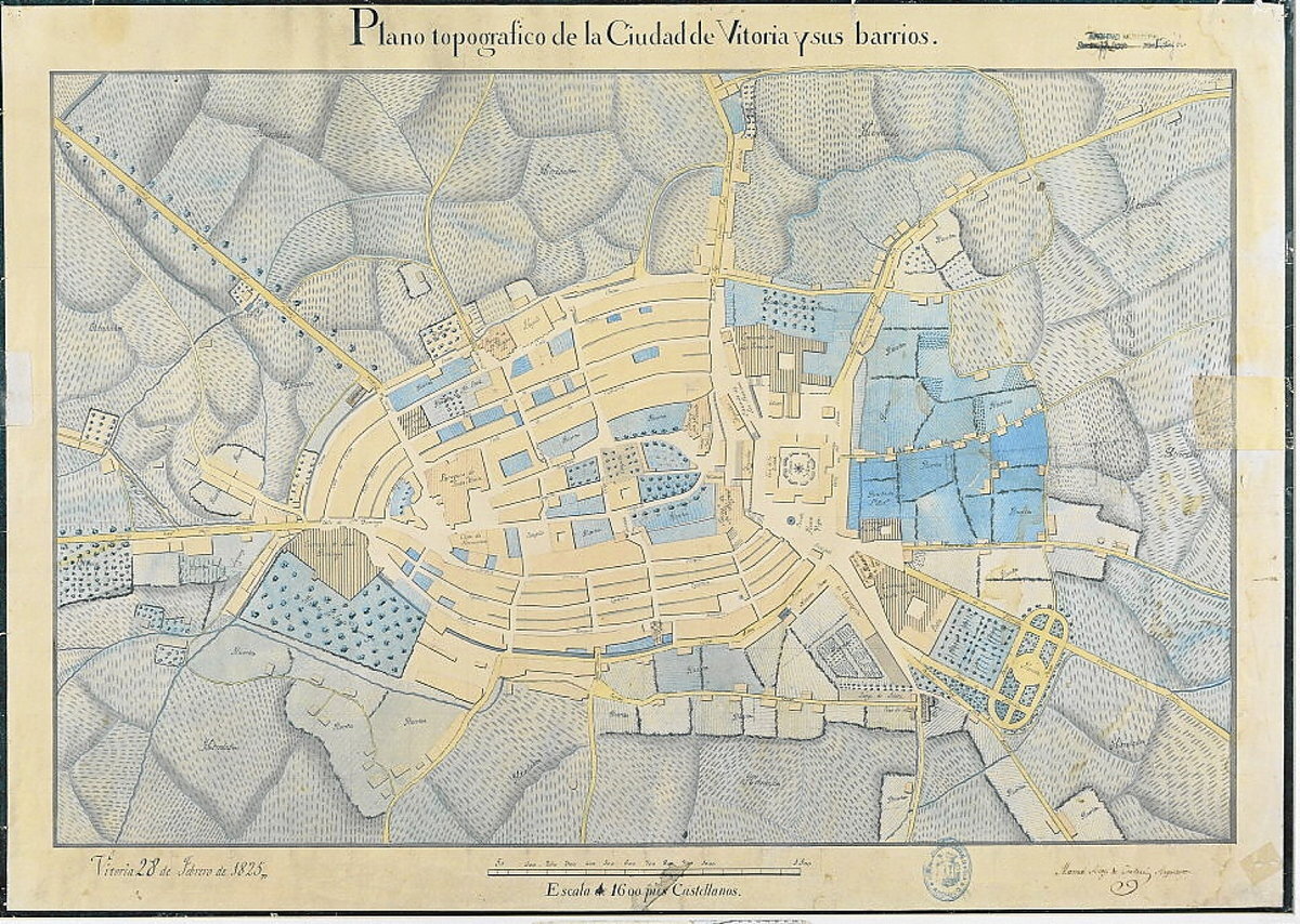 Manuel Angel de Chavarri arkitektoak egindako 1825eko Gasteizko plano zaharra (GASTEIZKO PILAR AROSTEGUI UDAL ARTXIBOA)