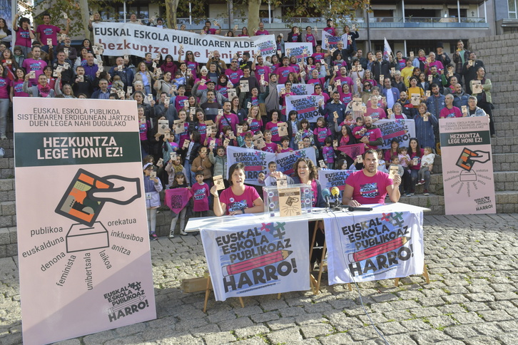 Era berean, «hezkuntza komunitatearen parte hartzerik gabe» egin den legea dela salatu dute, hain zuzen ere, «Eskola Publikoaren kaltetan» egindakoa dela. «Eusko Jaurlaritzak entzungor egin dio, Eskola Publikoaren izenean esandako guztiari», gehitu dute.