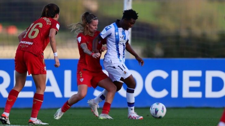 Incidencias: Partido de la 9ª jornada de Liga F, disputado en Zubieta. El Sevilla ha vestido de rojo.