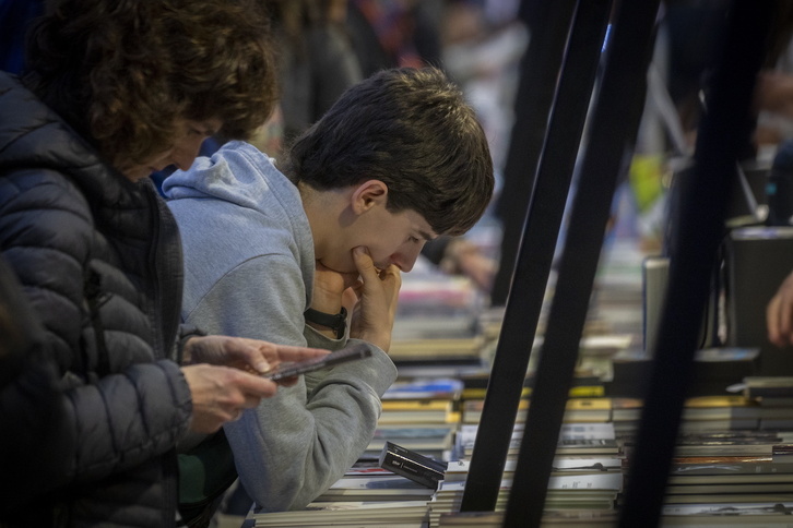 Aurten ez da online bidezko erosketa sistema eskaini. «Pandemiako urte bereziak pasa ondoren, iaz, jendeak hona etortzea nahiago izan zuten. Online salmenta asko jaitsi zen. Azoka normal egonda horren hautua egiten du –esan du Osak–. Izan ere, bertatik bertara ikusi nahi ditu erosleak argitalpenak, eskuan hartu, usaitu, alderatu, lehenengo buelta emanez dena ikusi, ondoren pentsatu zer erosi.. hori luxua da. Edozein liburu dendetan aurkitzen ez duzun gauza asko dago hemen, gainera».