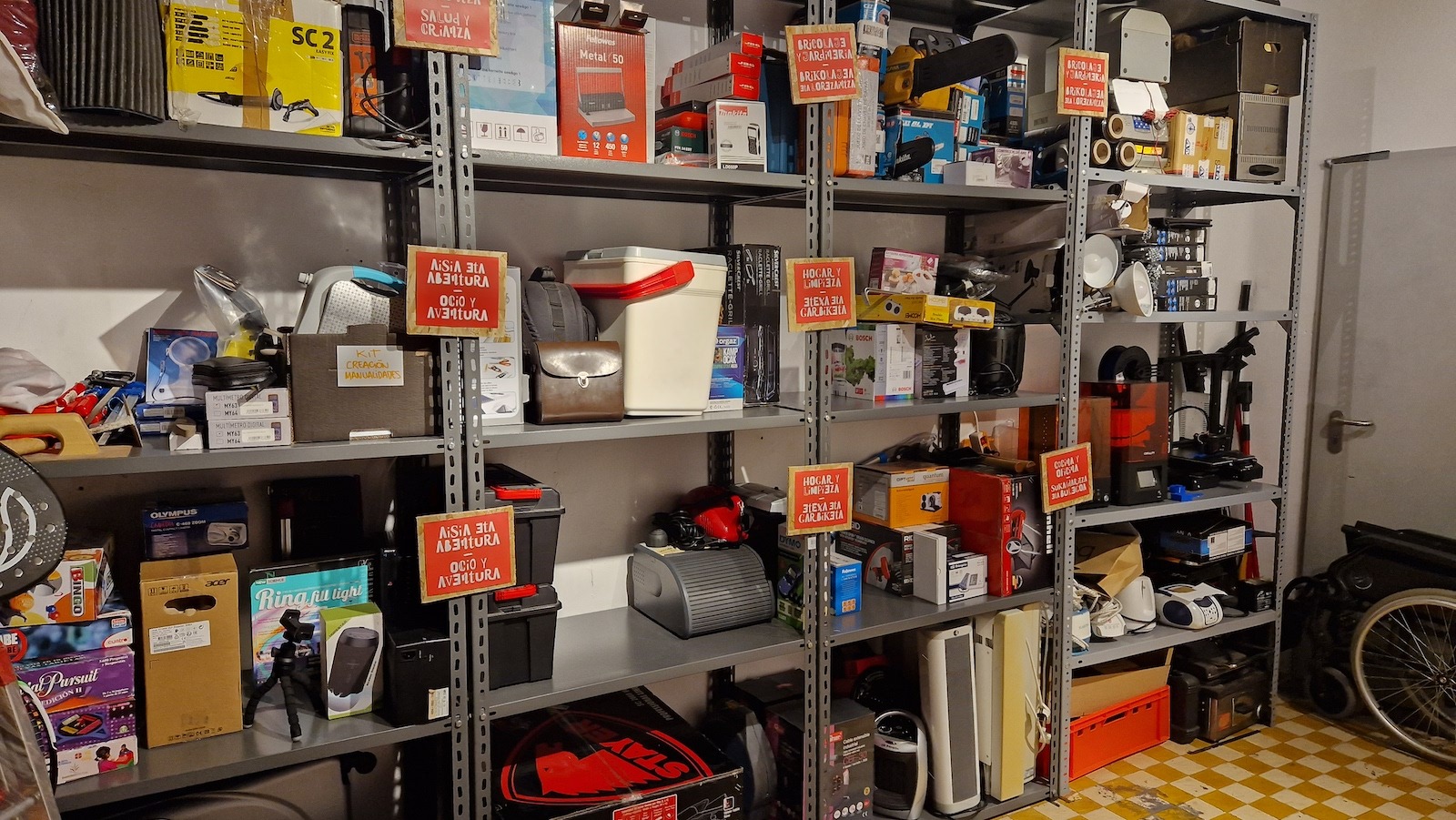 Con las categorías en las que dividen el catálogo digital y un par de ejemplos de cada una, quizá sea fácil hacerse una idea del tipo de trastos: Bricolaje y Jardinería (taladros y azadas), Cocina y Oficina (paellera de 60 cm. y destructora de documentos), Electricidad (generador y flexo), Hogar y Limpieza (vaporetto y aspirador) y Salud y Cuidados (silla de ruedas, muletas). En total son 104 trastos diferentes, si bien de algunos existen varias unidades.